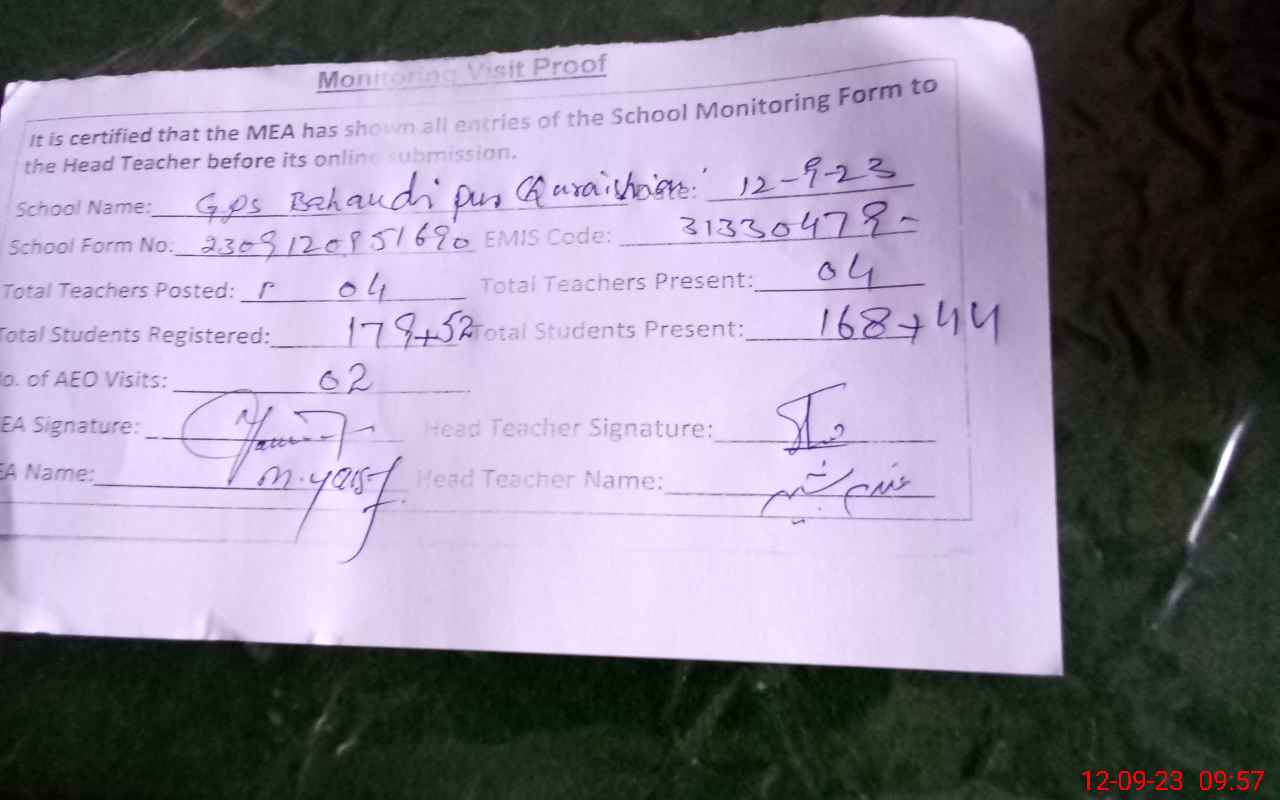 | EMIS Code: 31330479 | Name of School: GPS BAHAUDI PUR QURESHIAN | |||