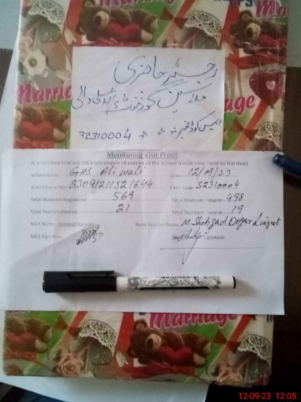 | EMIS Code: 32310004 | Name of School: GHS ALI WALI | |||