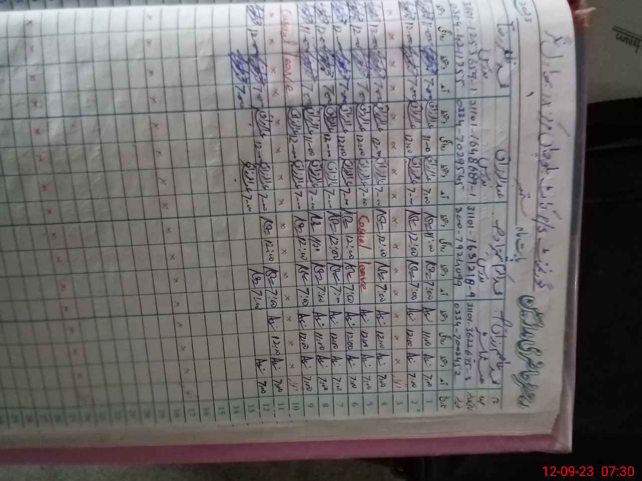 | CNIC | Full Name | Designation | R/C | Absence during last cal. month |
