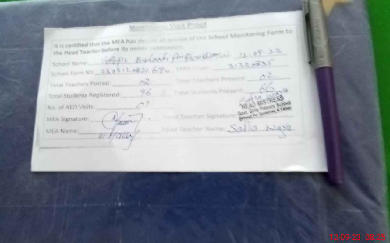 | Certified that this School was Inspected by the Undersigned MEA/DMO Today and the Information Stated Above is as Per Record. | |||||