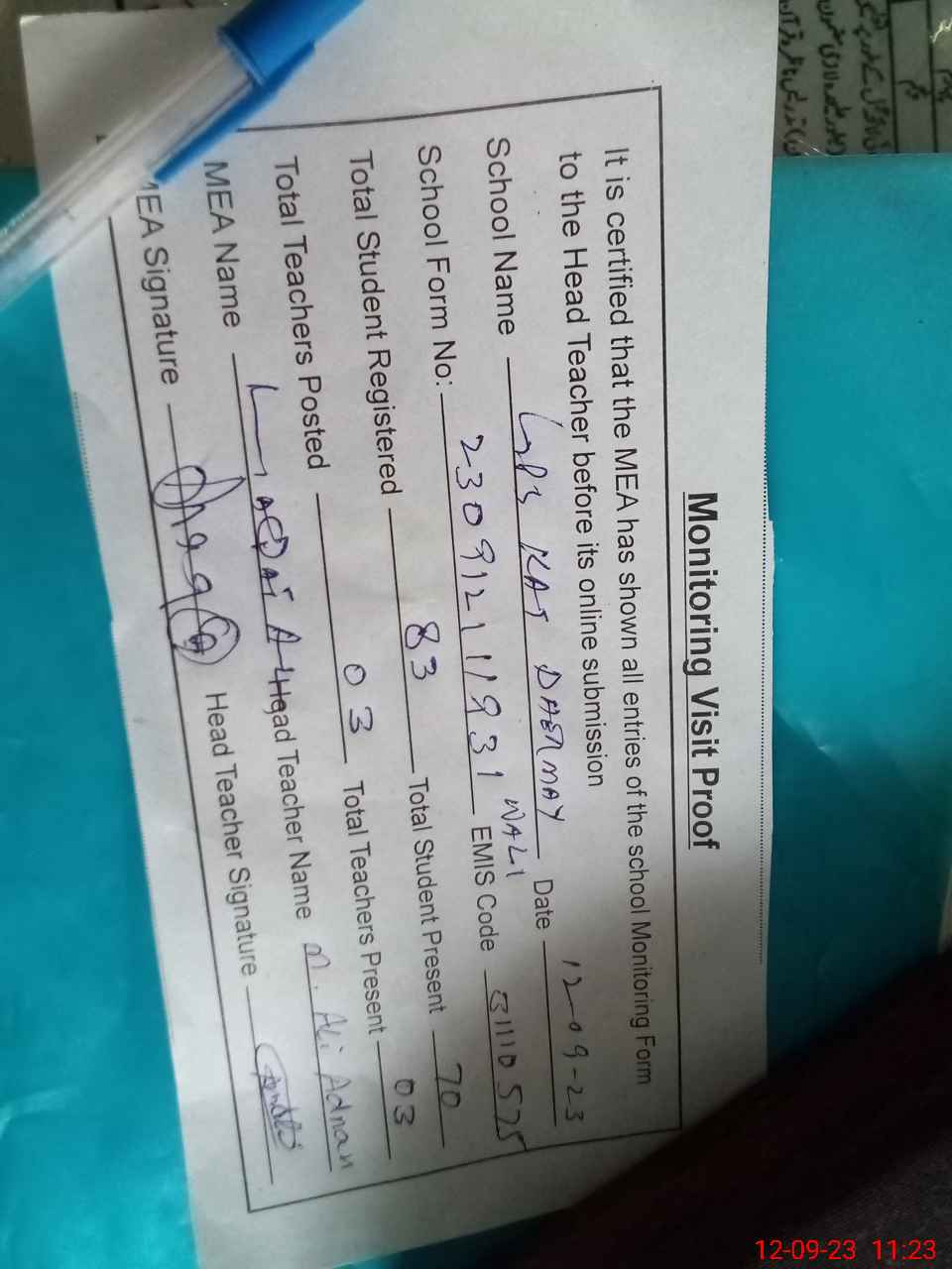 | EMIS Code: 31110575 | Name of School: GPS KAT DHARMAY WALI | |||