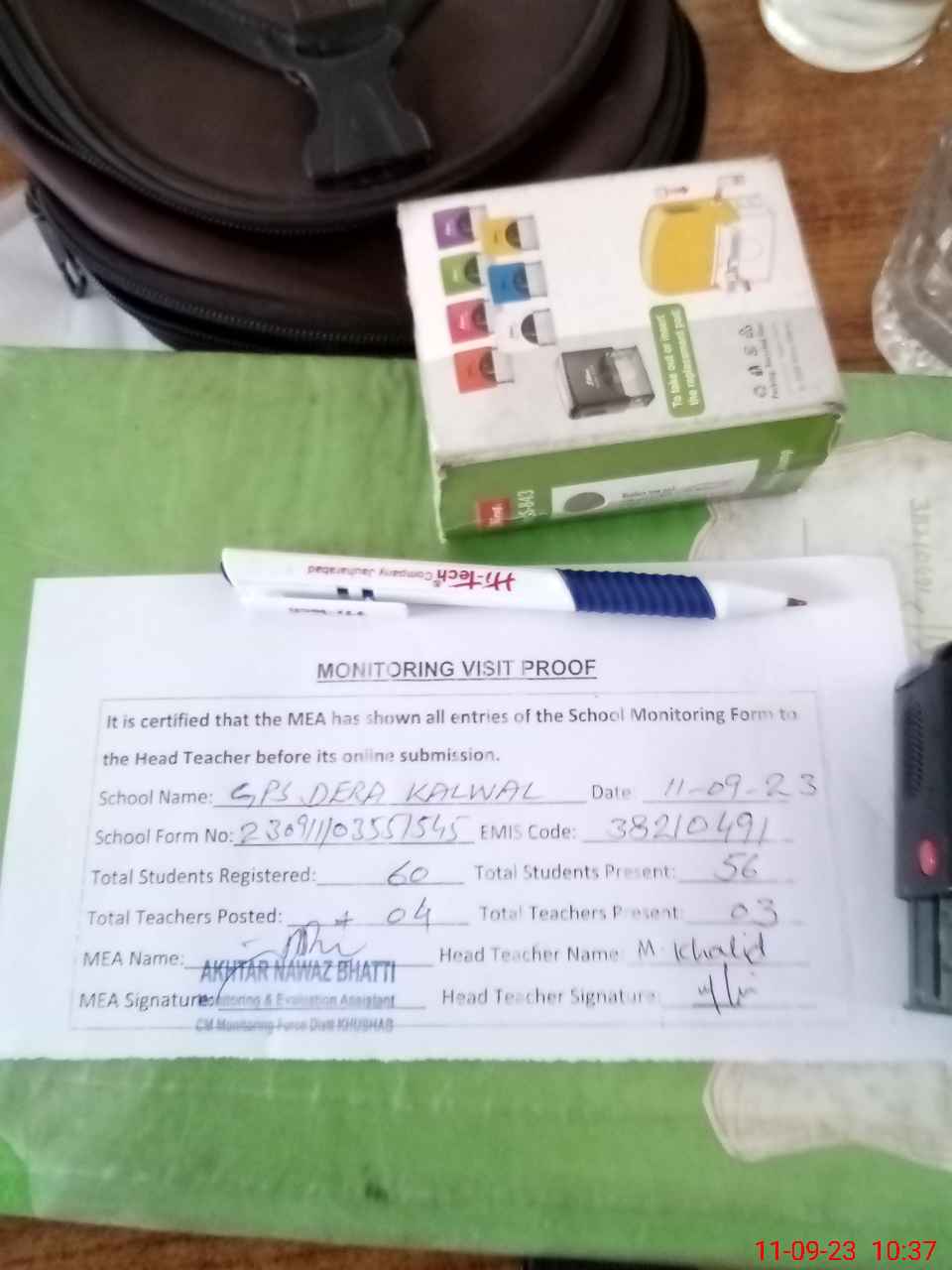 | Attendance Register | Head Teacher | MEA with School | Visit Proof |