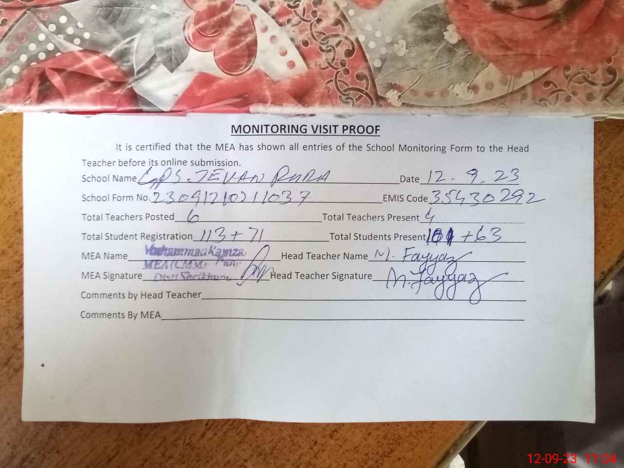| EMIS Code: 35430292 | Name of School: GPS JEVAN PURA KALAN | |||