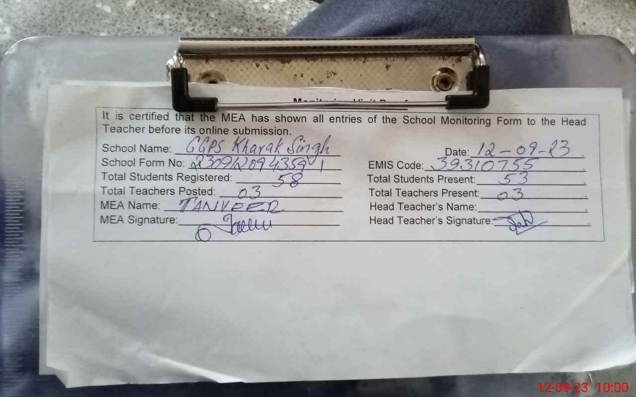 | EMIS Code: 39310755 | Name of School: GGPS KHARAK SINGH | |||