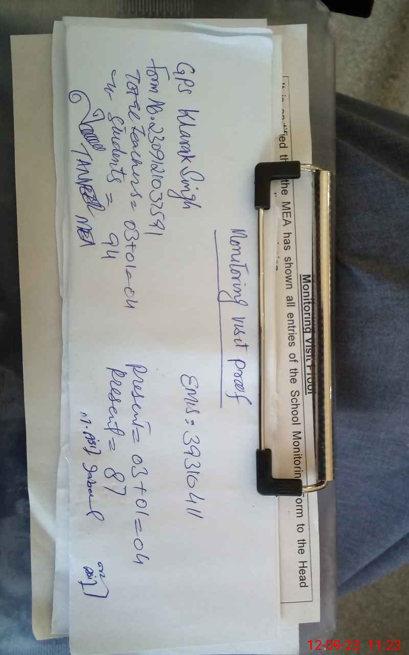 | Attendance Register | Head Teacher | MEA with School | Visit Proof |