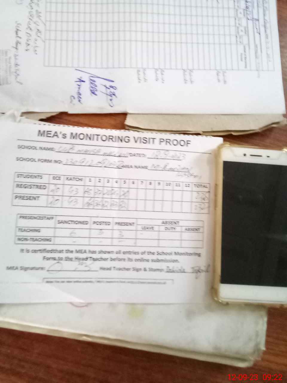 | Attendance Register | Head Teacher | MEA with School | Visit Proof |