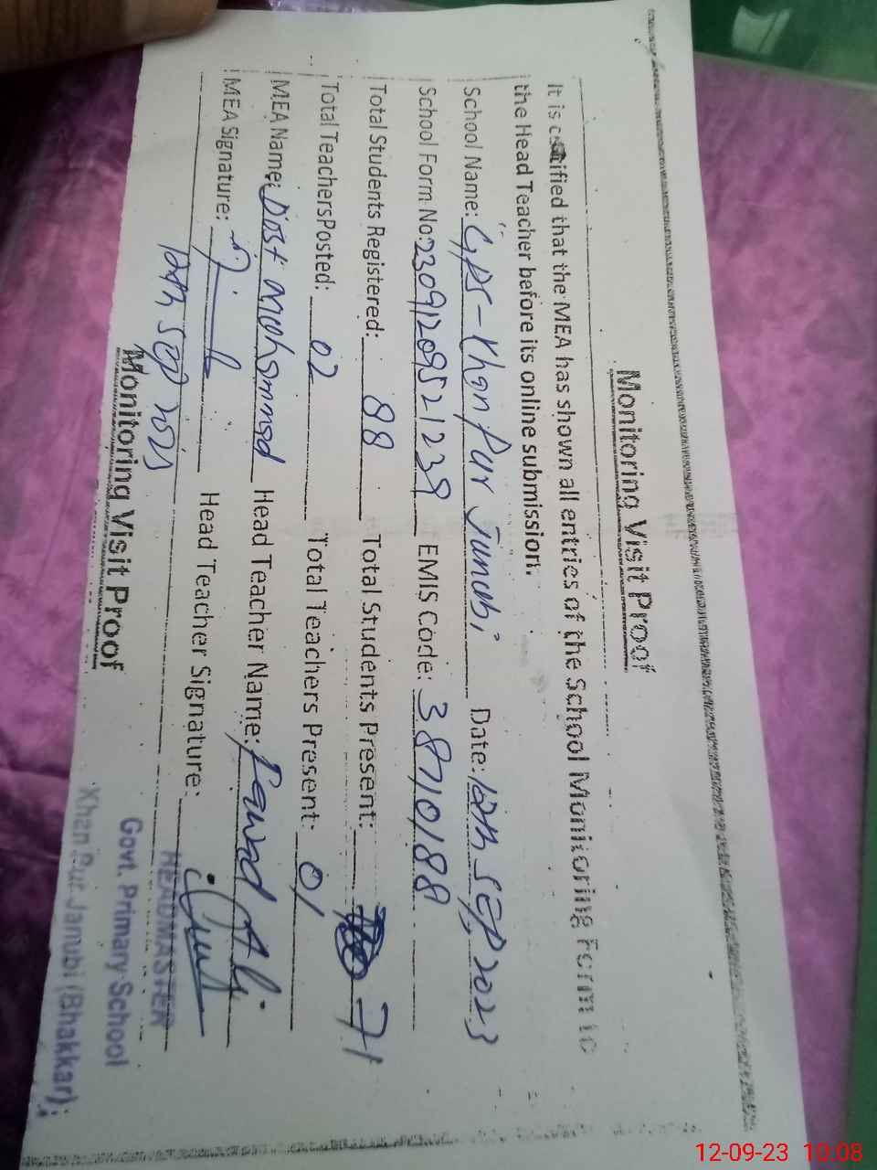 | EMIS Code: 38110188 | Name of School: GPS KHAN PUR JANUBI | |||