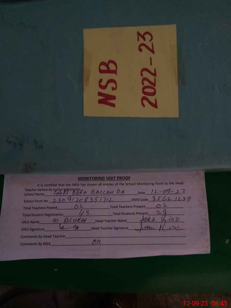 | EMIS Code: 35621229 | Name of School: GGPS DERA BALLAN DA CHAK 7 RB | |||