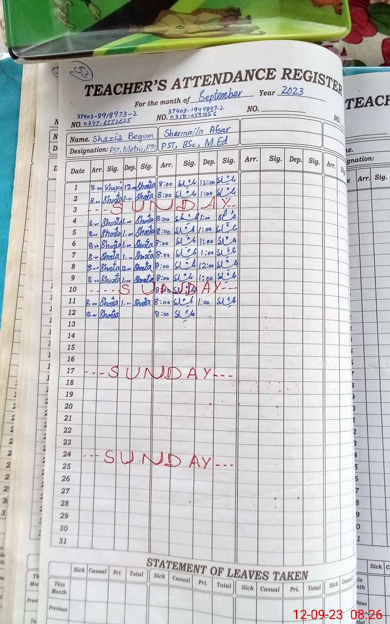 | Attendance Register | Head Teacher | MEA with School | Visit Proof |