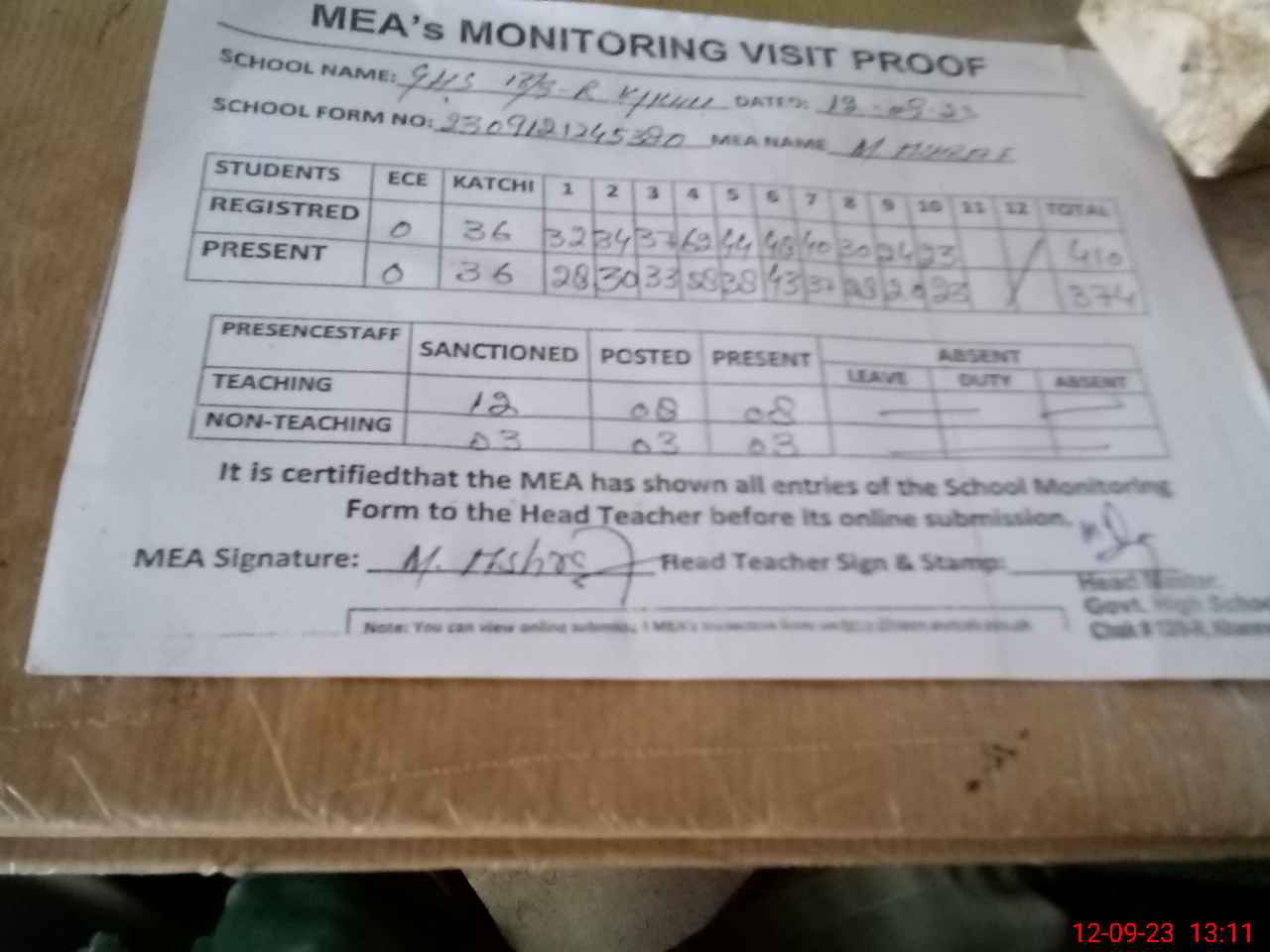 | EMIS Code: 36420074 | Name of School: GHS 13/9-R, KACHA KHUH | |||