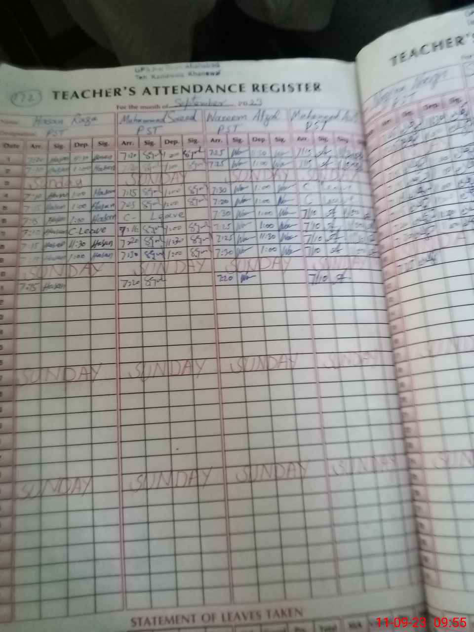 | CNIC | Full Name | Designation | R/C | Absence During Last Calender Month |