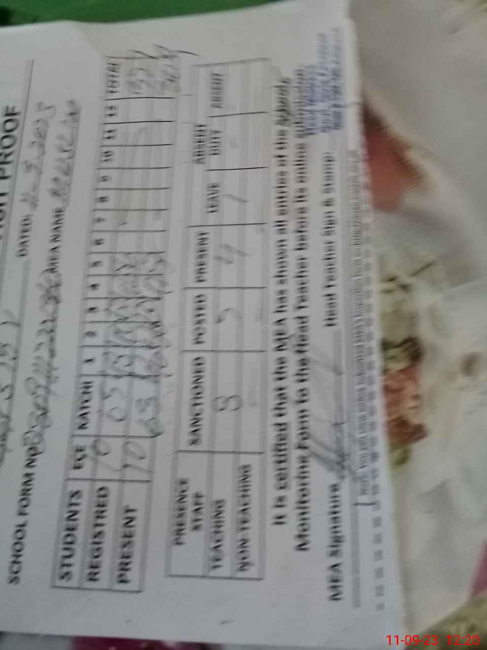 | Attendance Register | Head Teacher | MEA with School | Visit Proof |