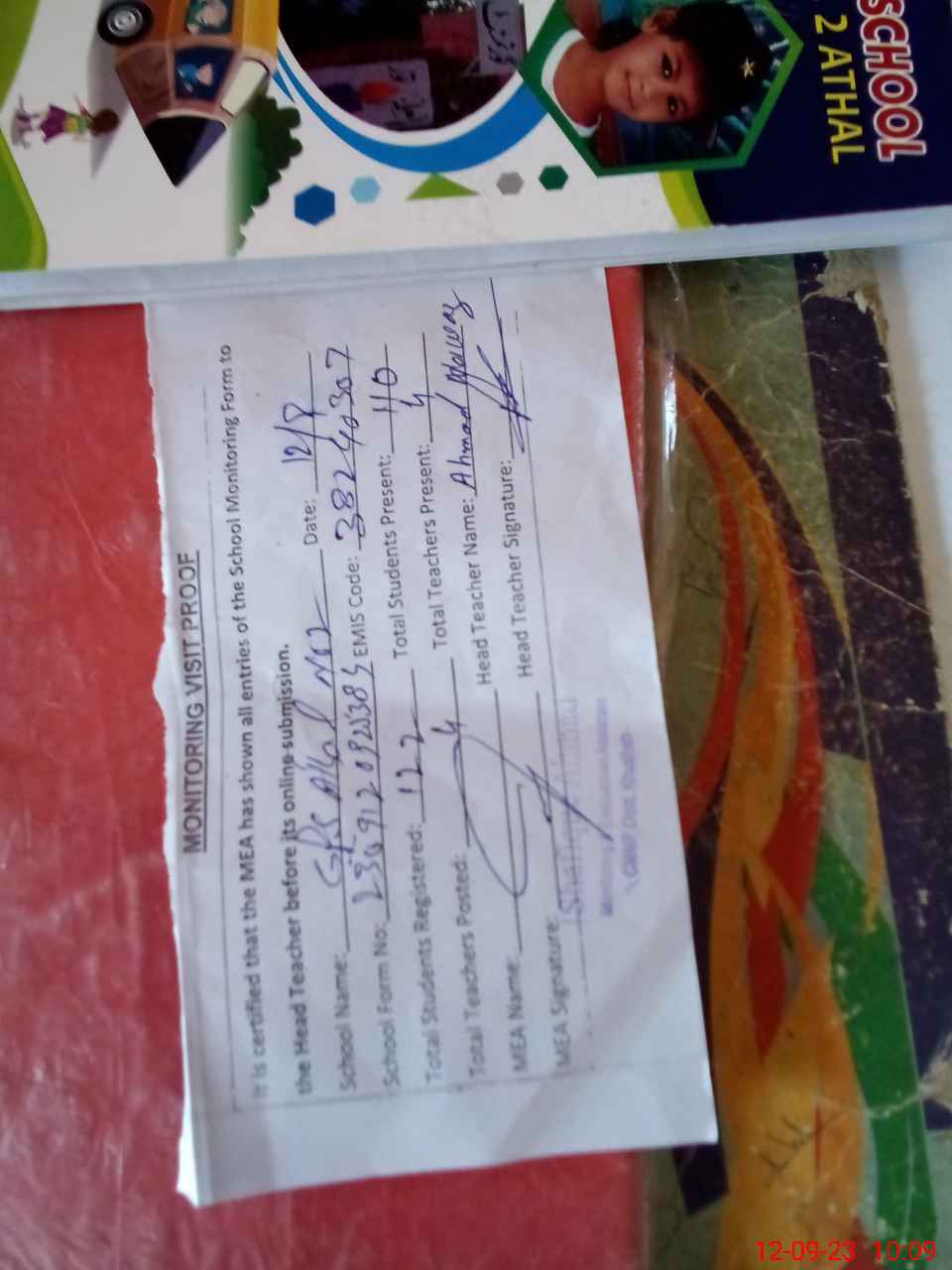 | Attendance Register | Head Teacher | MEA with School | Visit Proof |