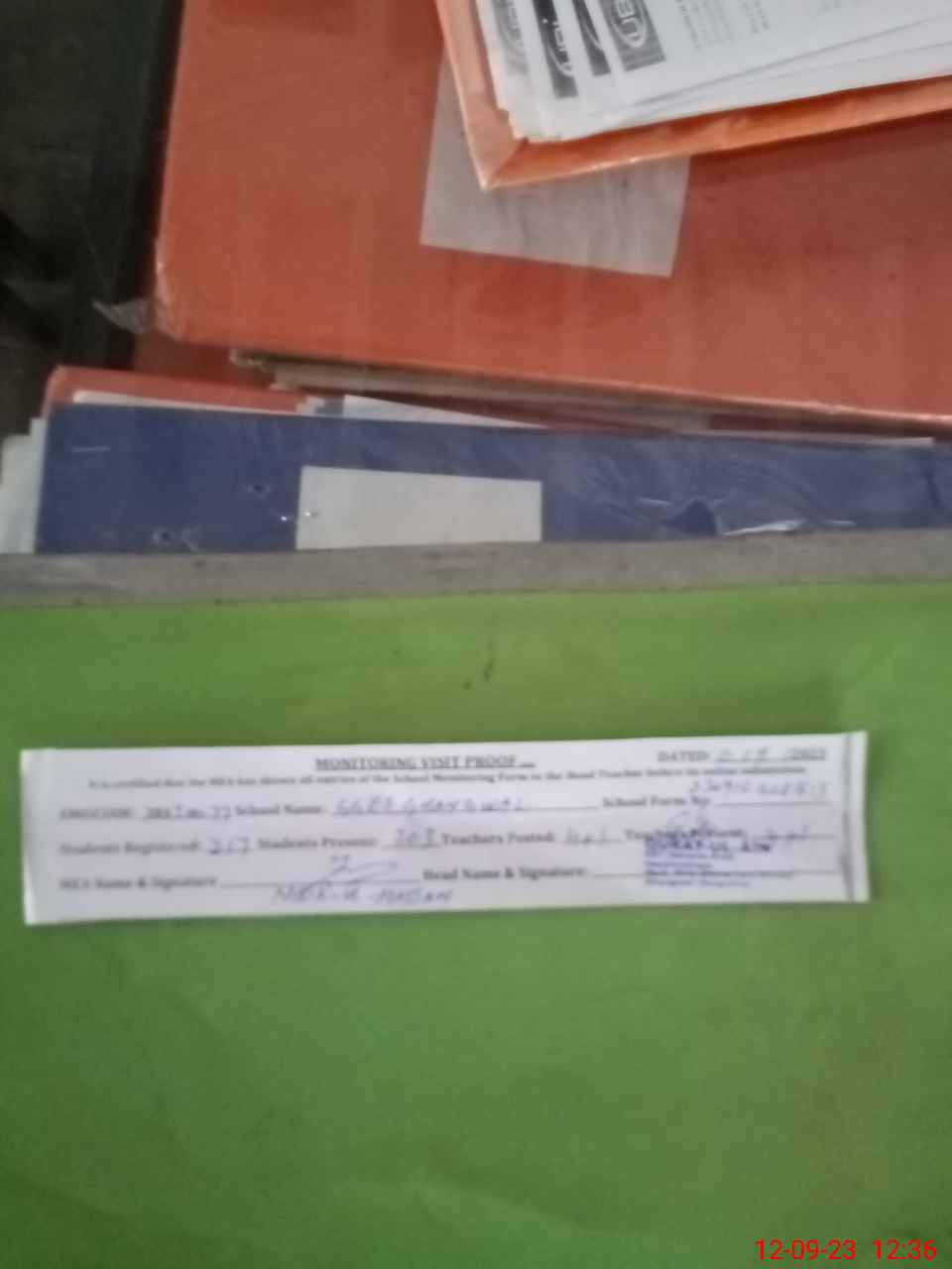| Attendance Register | Head Teacher | MEA with School | Visit Proof |
