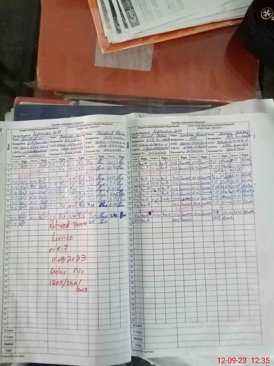| CNIC | Full Name | Designation | R/C | Absence During Last Calender Month |