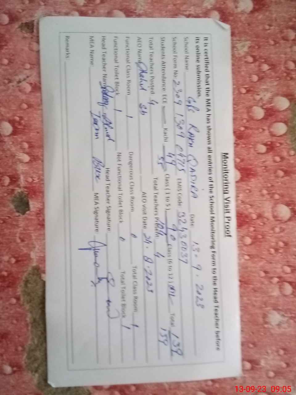 | Remarks (Use Separate Page if Required): Due to sufficient enrolment Two class rooms are required and 2x toilet also | |||||