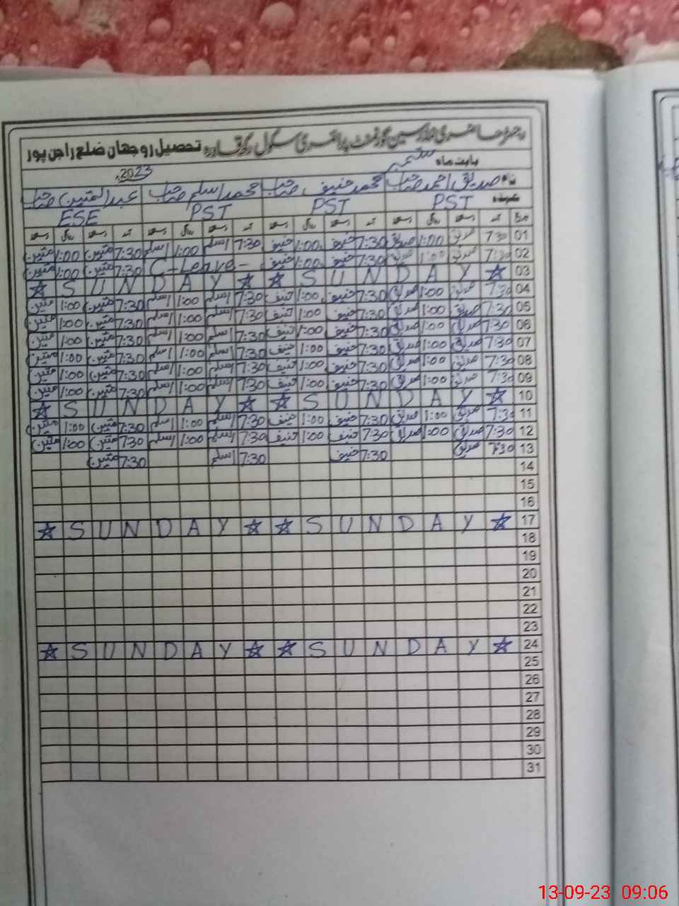 | Name: SA**** AH**** Designation: (School Headmaster's/Headmistress's) PST Phone/Cell Number: 03**** |