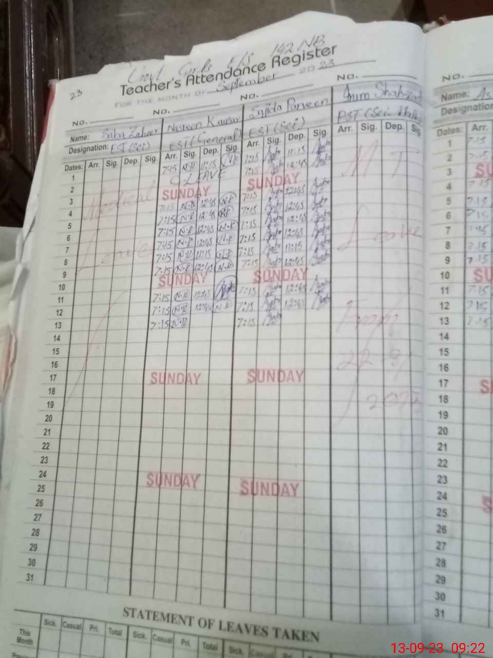 | Name: Sa**** Pa**** Designation: (School Headmaster's/Headmistress's) EST SCI Phone/Cell Number: 03**** |