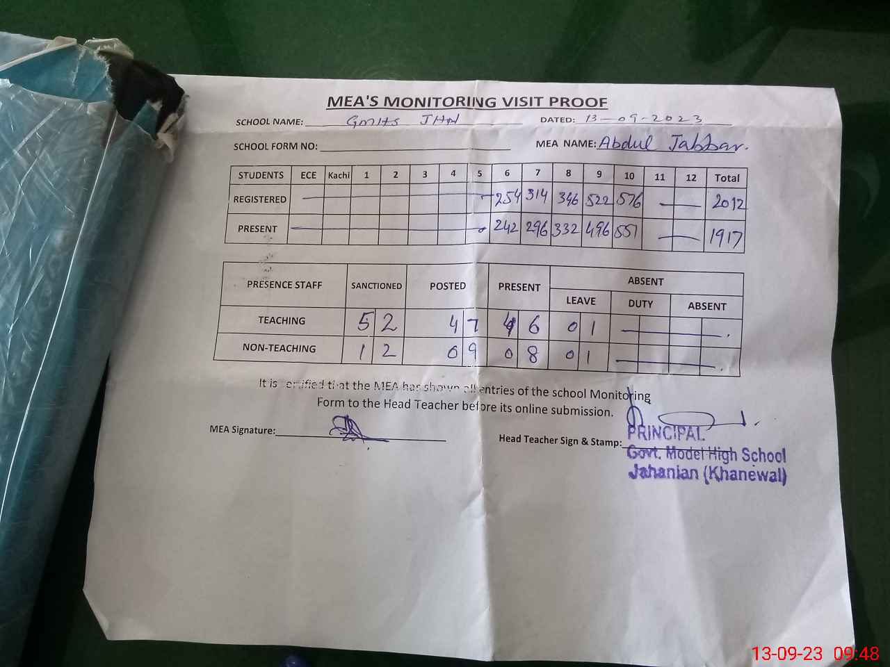 | EMIS Code: 36440029 | Name of School: GMHS JAHANIAN, JAHANIAN | |||