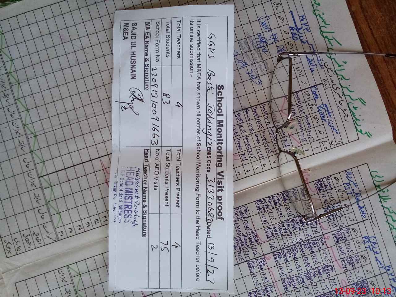 | Attendance Register | Head Teacher | MEA with School | Visit Proof |