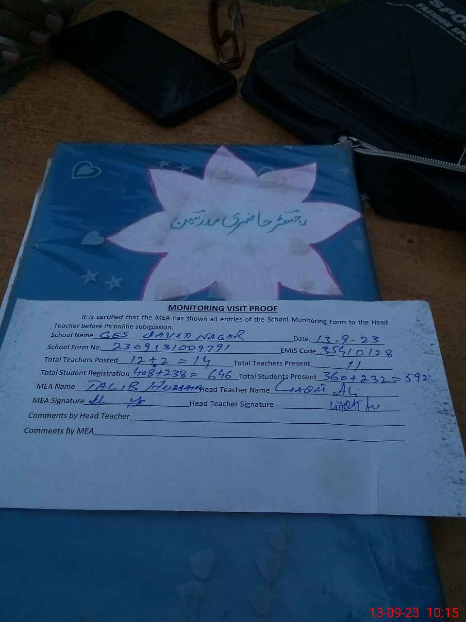 | Attendance Register | Head Teacher | MEA with School | Visit Proof |