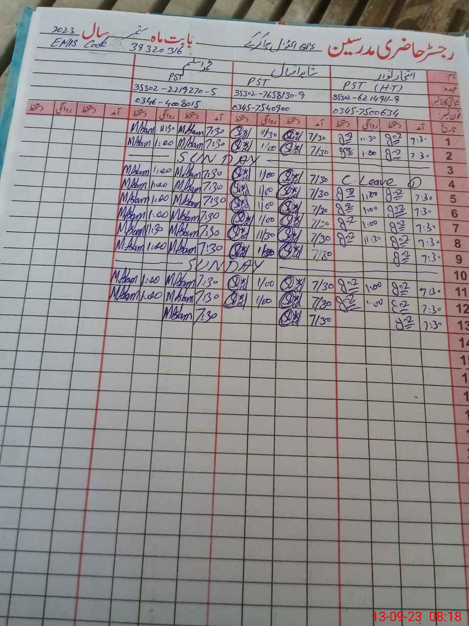 | Name: Mu**** Hu**** Designation: (School Headmaster's/Headmistress's) PST Phone/Cell Number: 03**** |