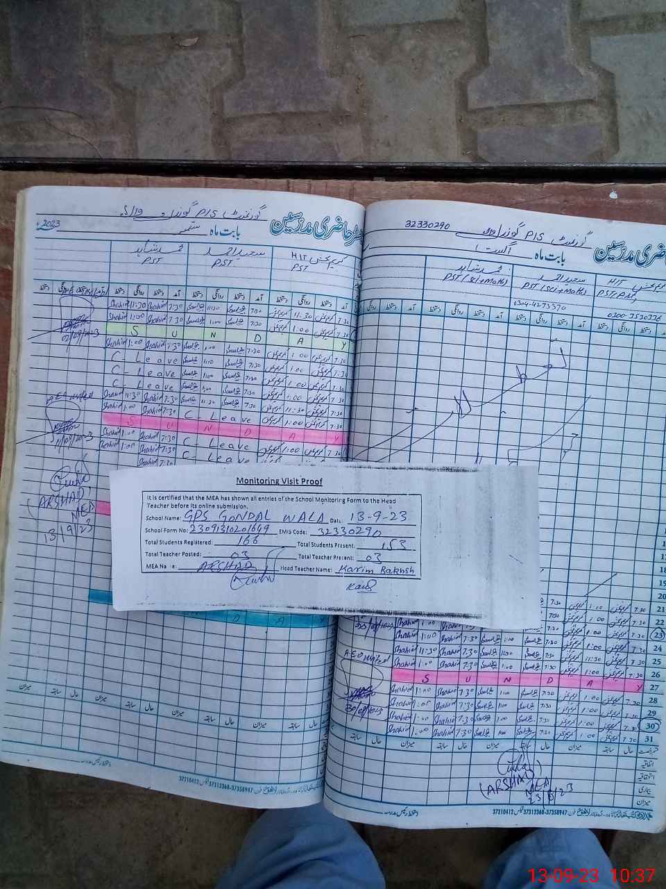 | Attendance Register | Head Teacher | MEA with School | Visit Proof |
