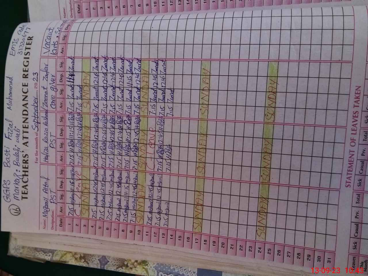 | Name: Mu**** Al**** Designation: (School Headmaster's/Headmistress's) PST Phone/Cell Number: 03**** |