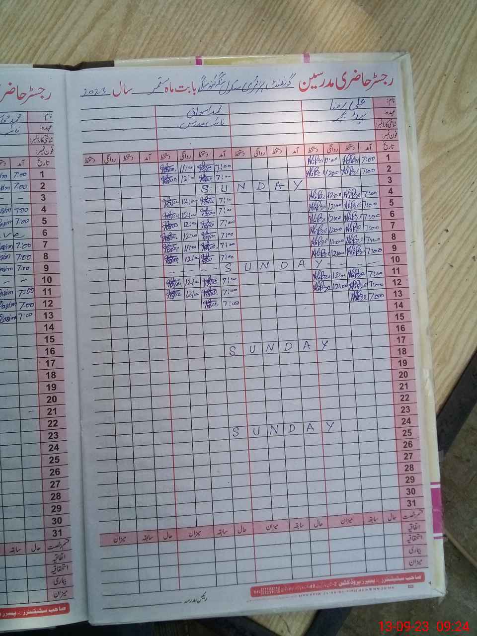 | Name: AL**** RA**** Designation: (School Headmaster's/Headmistress's) PST Phone/Cell Number: 03**** |