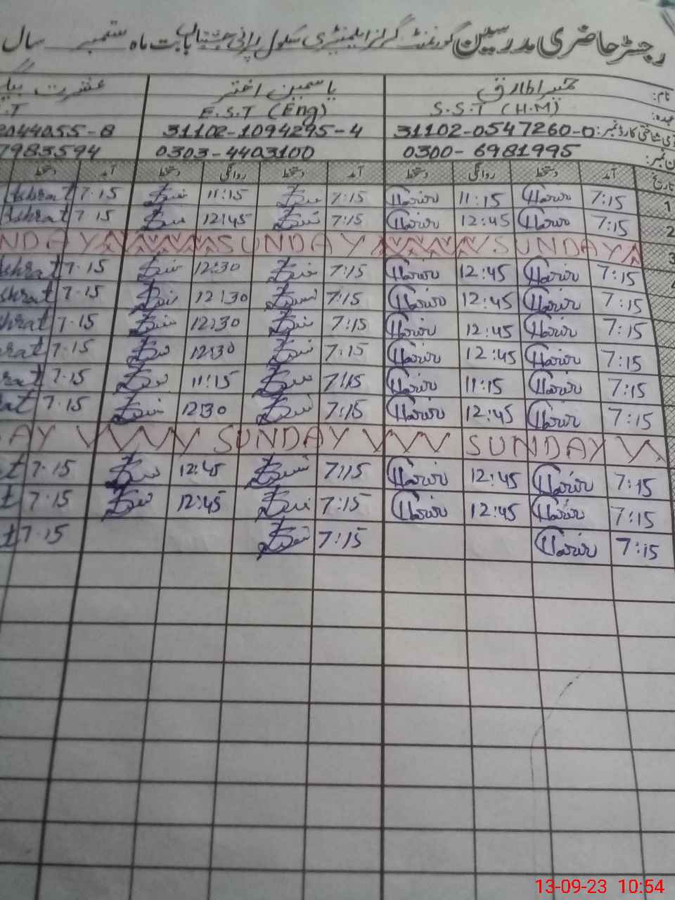 | Name: HU**** TA**** Designation: (School Headmaster's/Headmistress's) S.S.E.(Arts) Phone/Cell Number: 03**** |