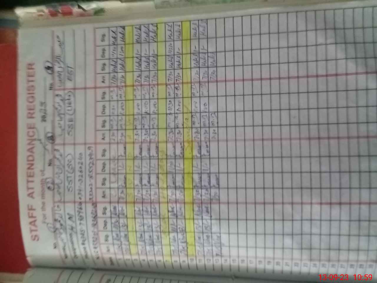| Total no. of Classrooms: 21 No. of Classrooms Used for Teaching: 7 No. of Classrooms Storing Old Furniture, FTBs, etc: 0Comments if Any: Two class iv detailed on night duty are shown official duty because both are not available during visit |