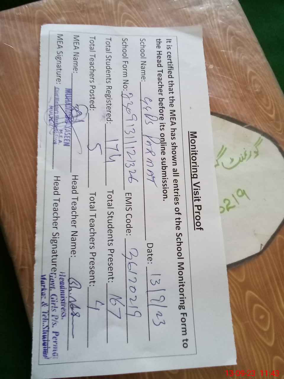 | EMIS Code: 36120219 | Name of School: GGPS PARMAT STOP MUZA HALALWAJA | |||