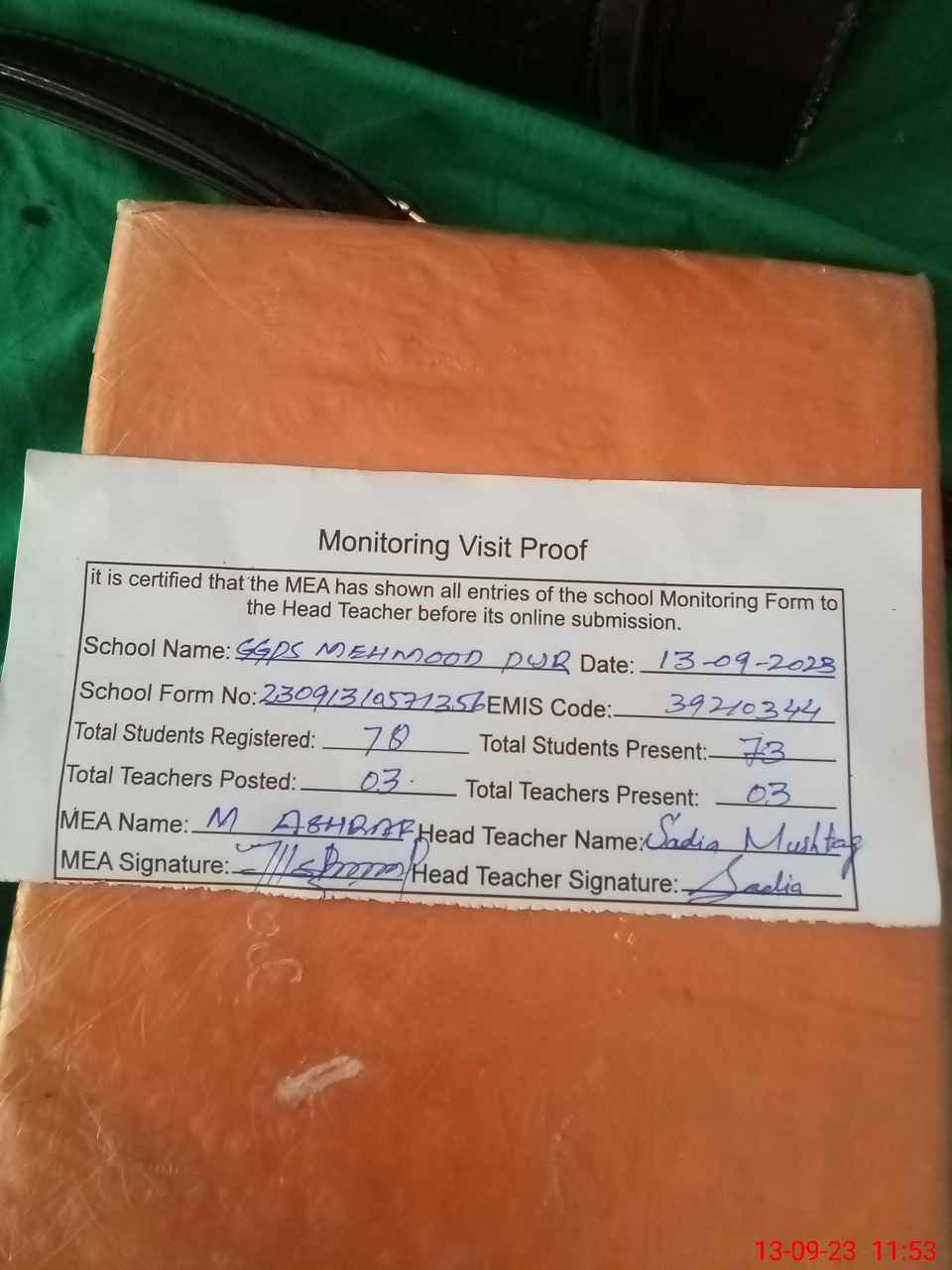 | EMIS Code: 39210344 | Name of School: GGPS MAHMOOD PUR | |||