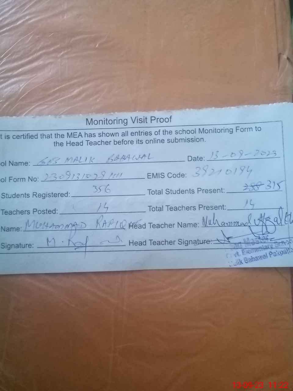 | EMIS Code: 39210194 | Name of School: GES MALIK BAHAWAL PO PAKPATTAN | |||