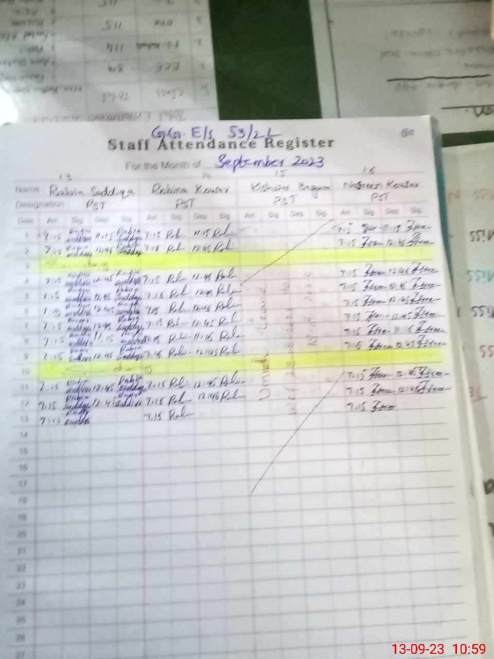 | CNIC | Full Name | Designation | R/C | Absence During Last Calender Month |