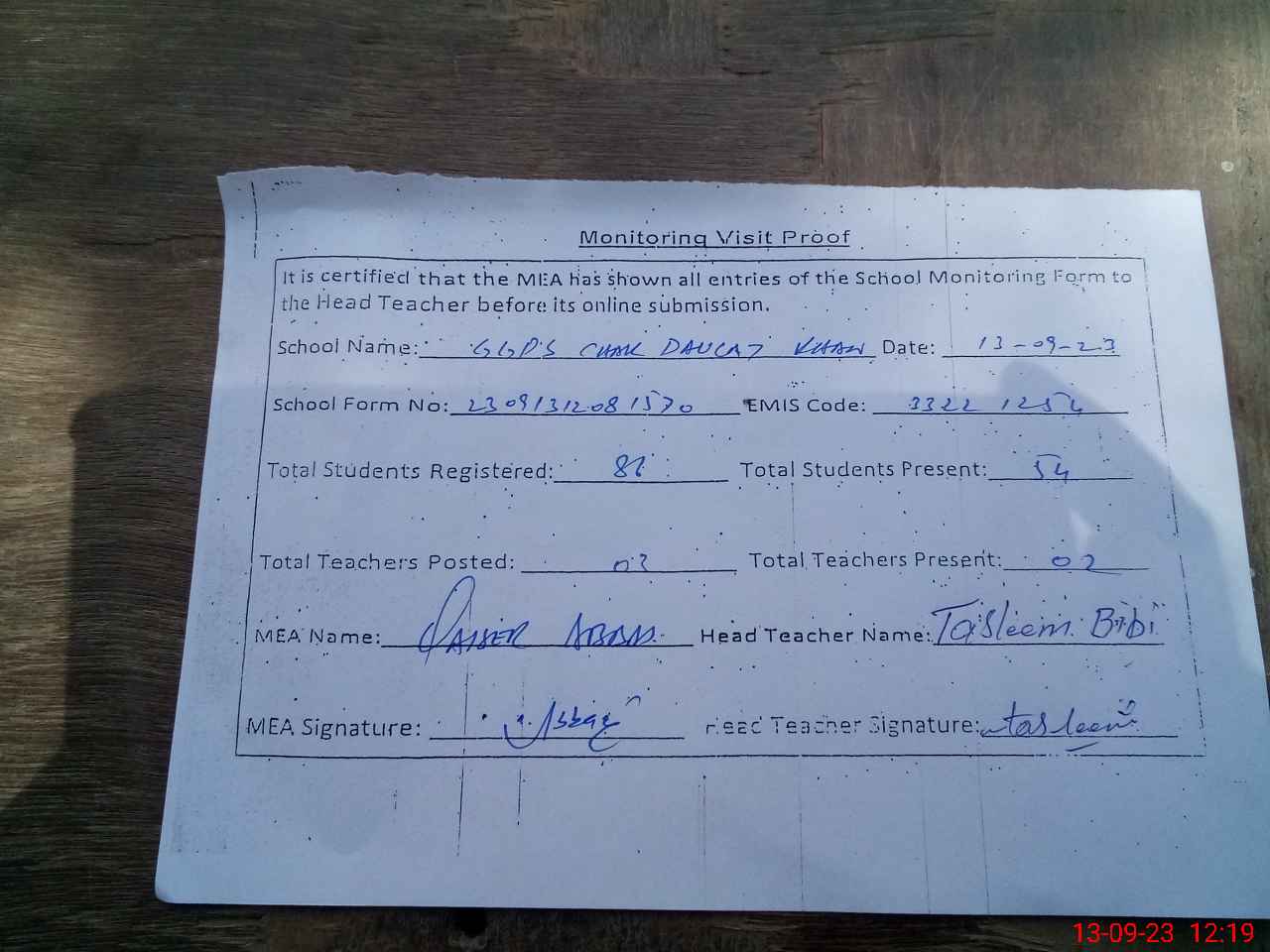 | EMIS Code: 33221254 | Name of School: GGPS CHAK DAULAT KHAN | |||