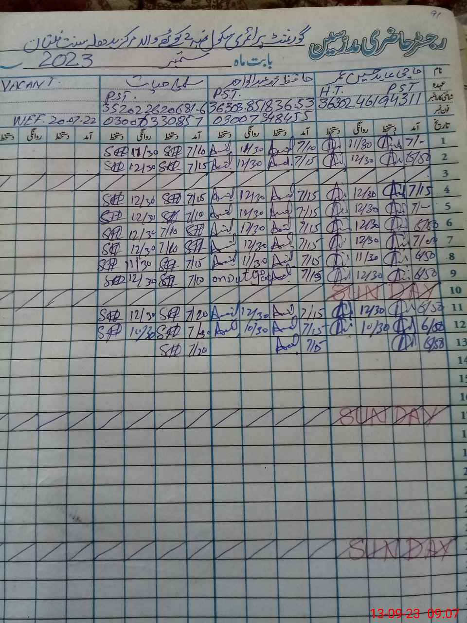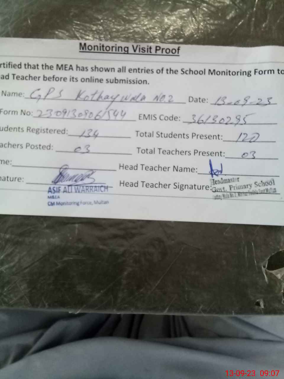 | EMIS Code: 36130295 | Name of School: GPS KOTHEY WALA NO. 2 MULTAN | |||