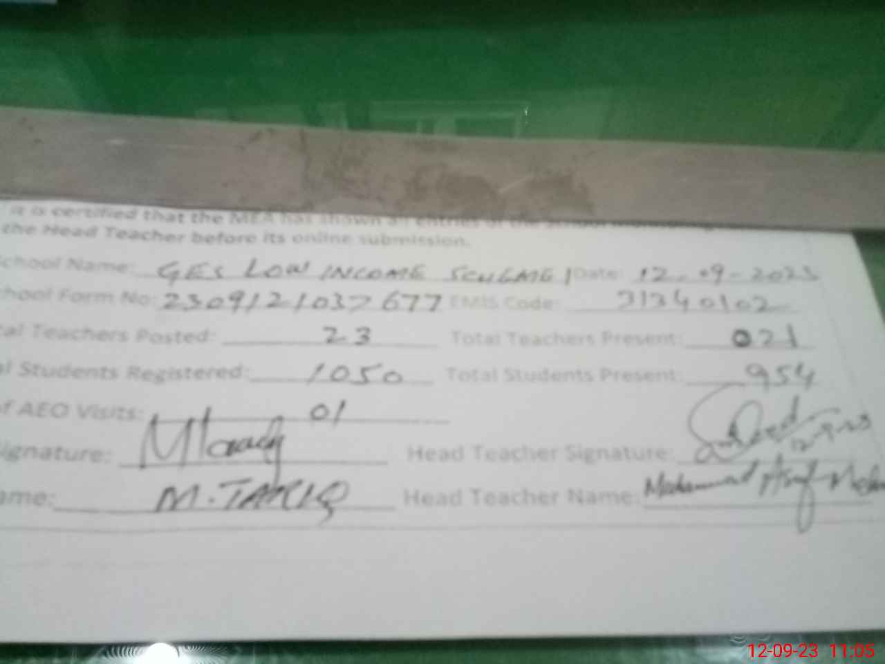 | EMIS Code: 31340102 | Name of School: GES LOW INCOME SCHEME NO. 1 | |||