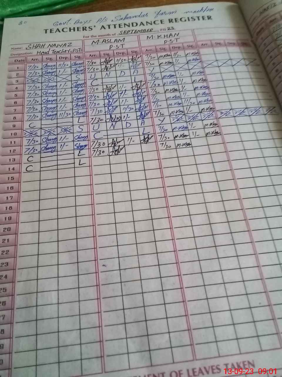 | Name: SH**** Designation: (School Headmaster's/Headmistress's) PST/PTC/JV Phone/Cell Number: 03**** |