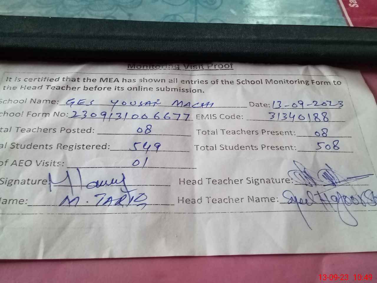 | EMIS Code: 31340188 | Name of School: GES YOUSIF MACHHI | |||