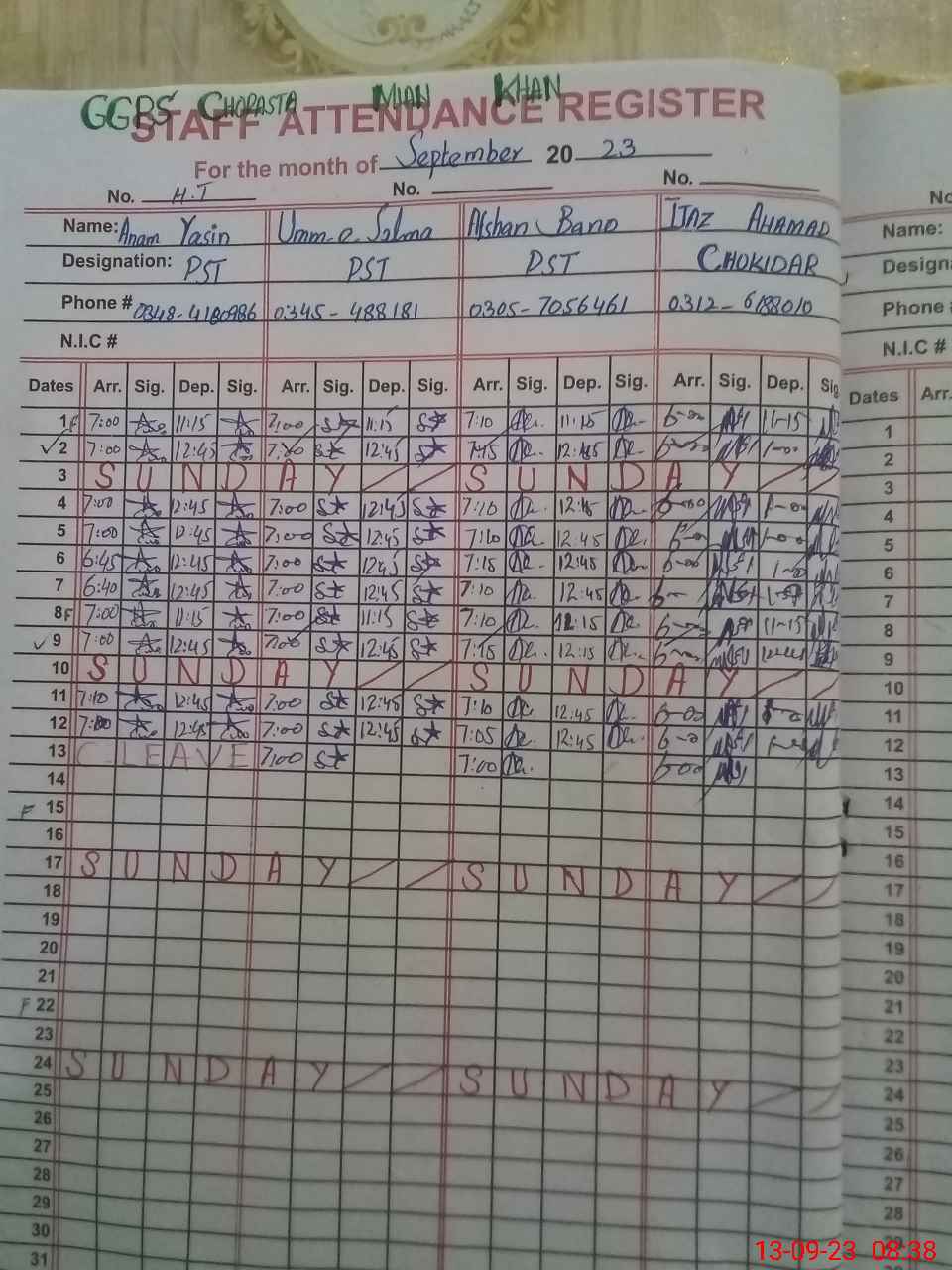 | Name: Af**** Ba**** Designation: (School Headmaster's/Headmistress's) PST Phone/Cell Number: 03**** |