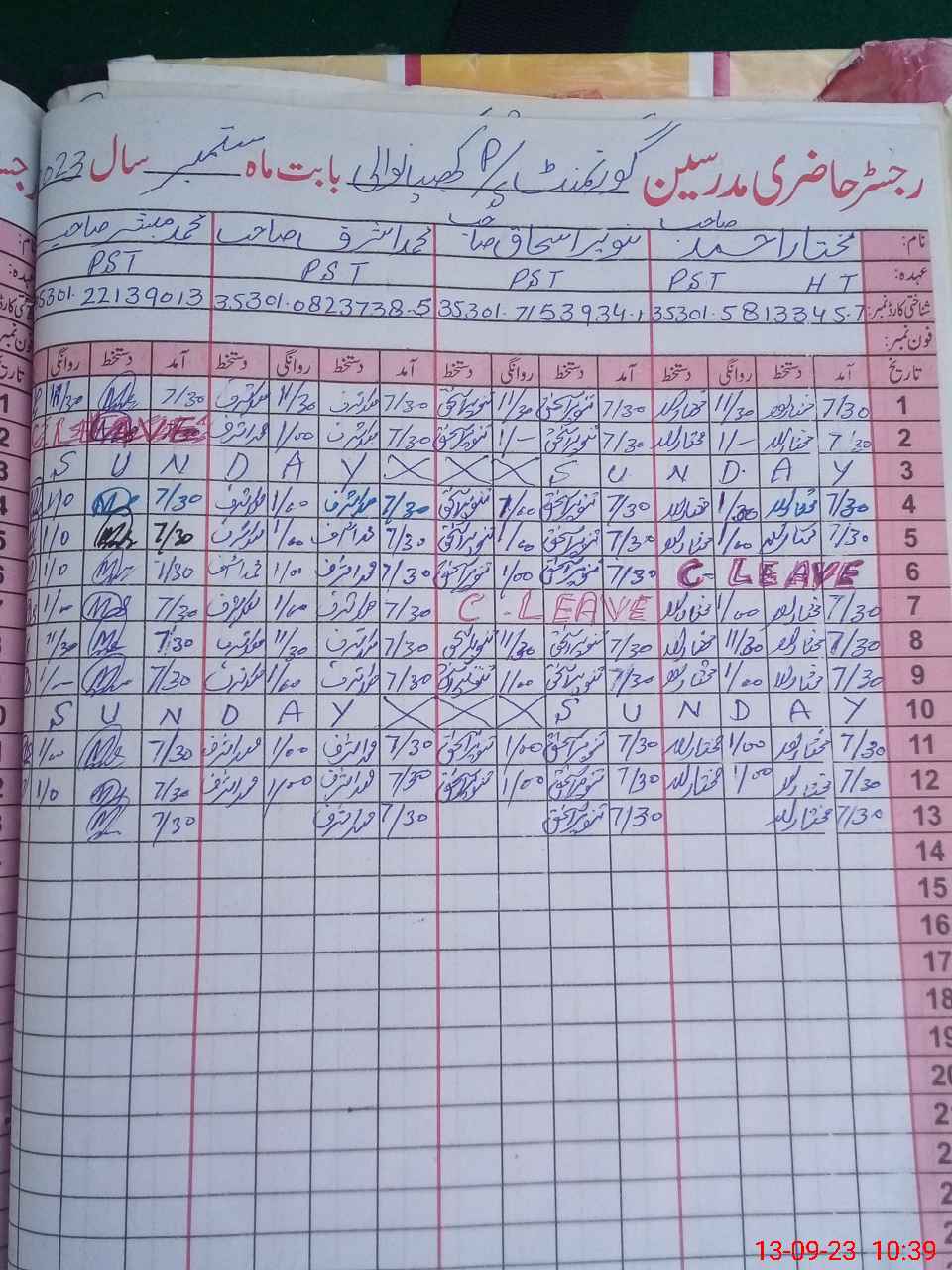 | CNIC | Full Name | Designation | R/C | Absence During Last Calender Month |