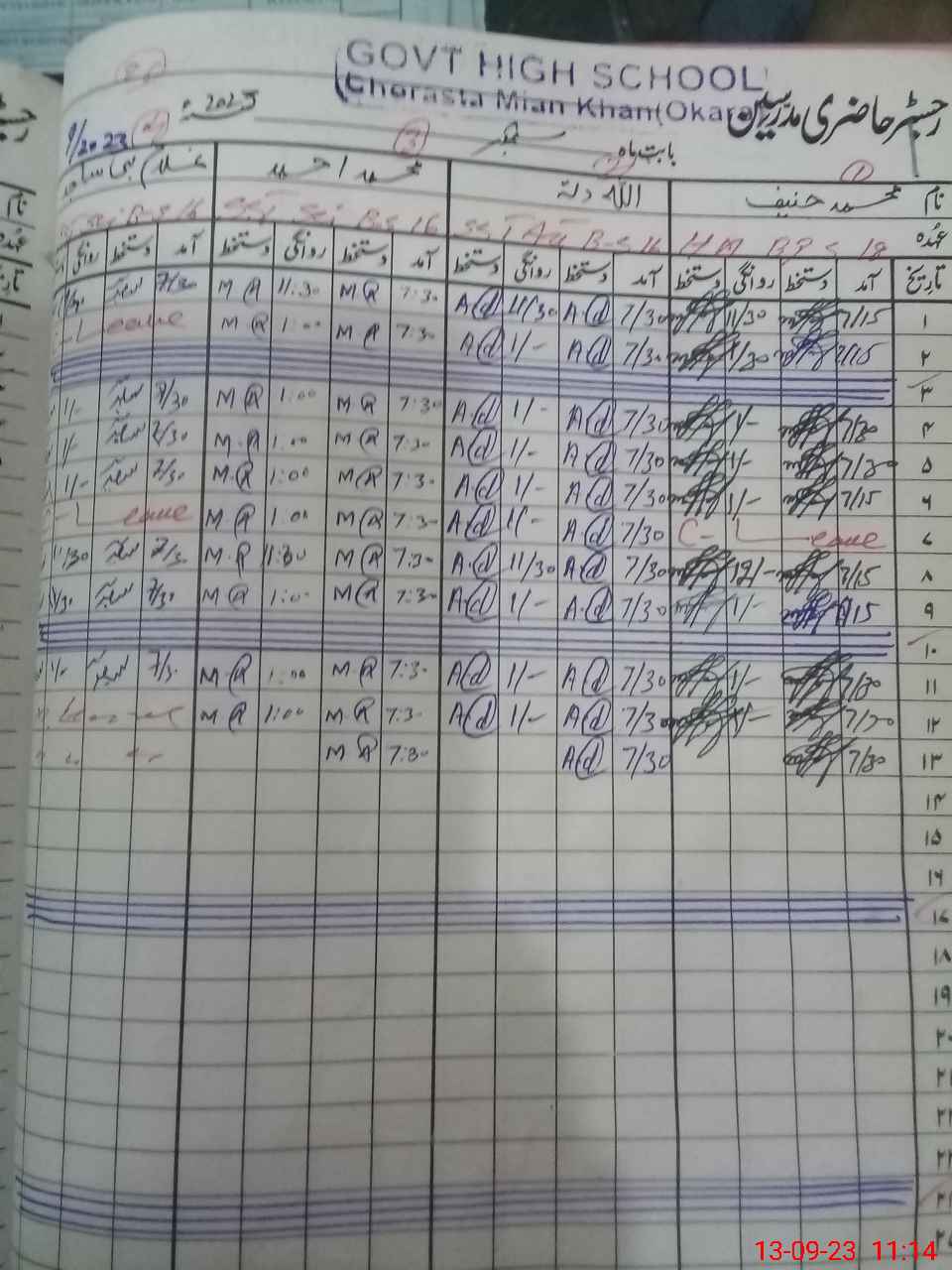 | CNIC | Full Name | Designation | R/C | Absence During Last Calender Month |