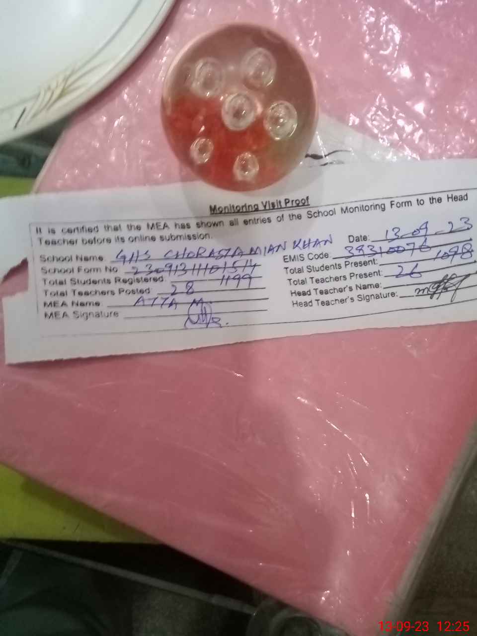 | Attendance Register | Head Teacher | MEA with School | Visit Proof |