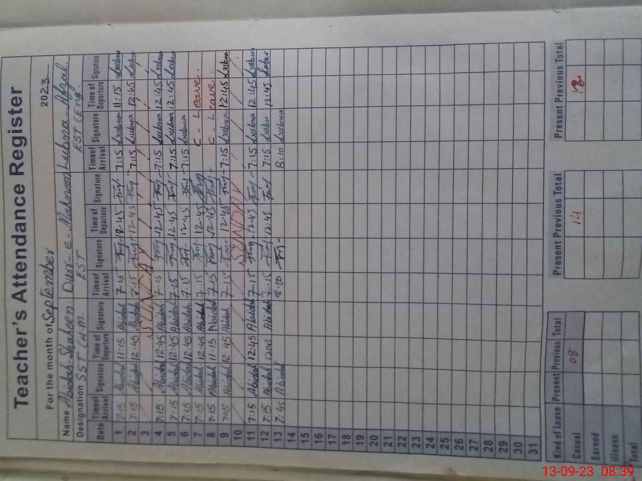 | Name: AB**** SH**** Designation: (School Headmaster's/Headmistress's) S.S.T.(Arts) Phone/Cell Number: 03**** |