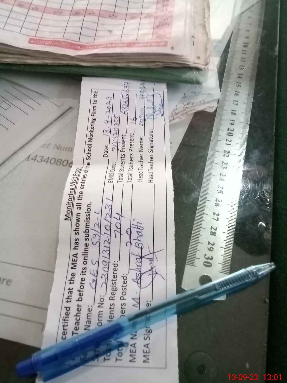 | Attendance Register | Head Teacher | MEA with School | Visit Proof |