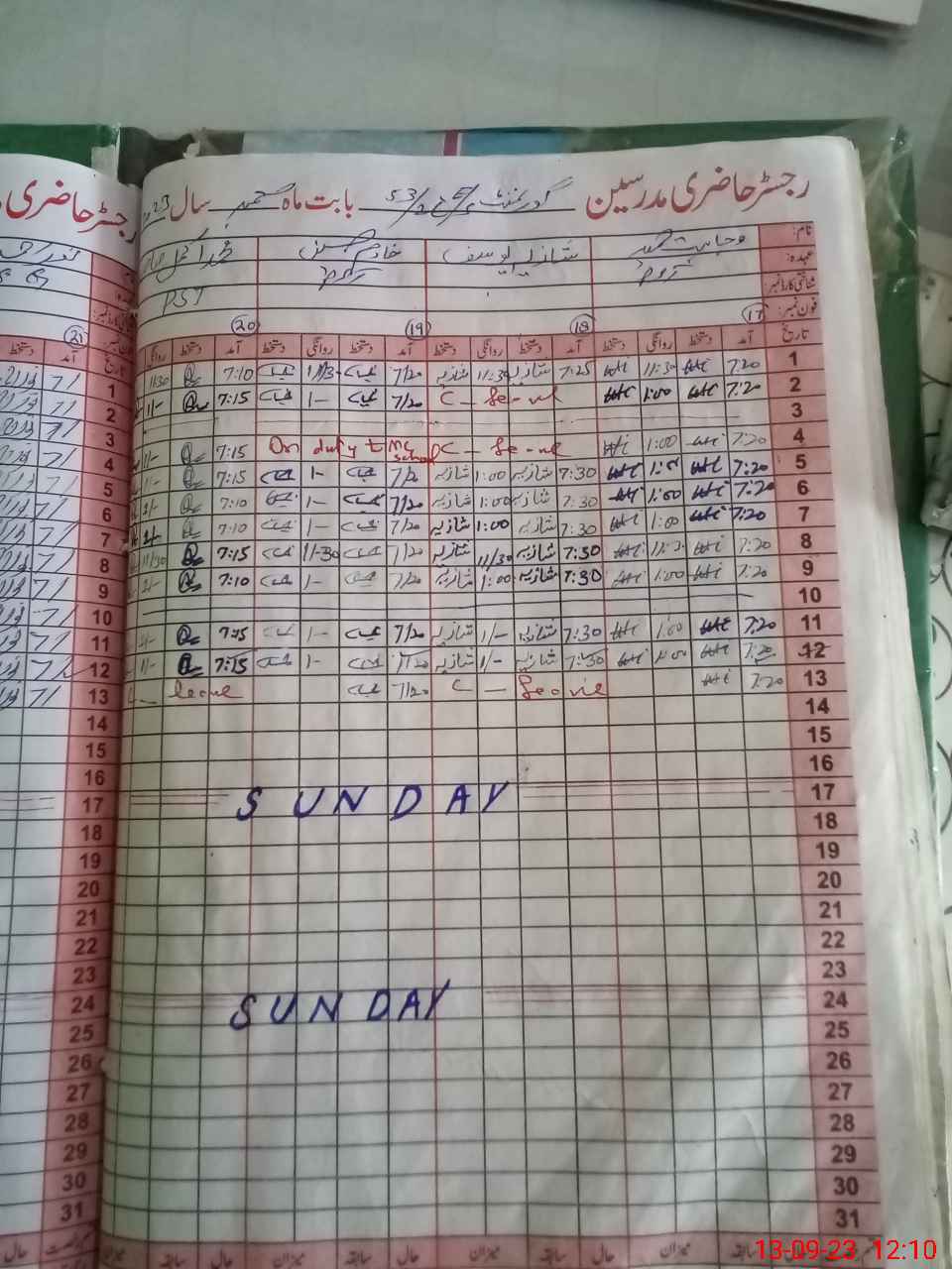 | CNIC | Full Name | Designation | R/C | Absence During Last Calender Month |