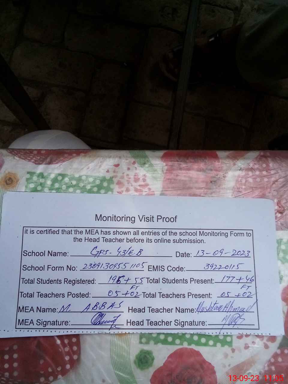 | Certified that this School was Inspected by the Undersigned MEA/DMO Today and the Information Stated Above is as Per Record. | |||||