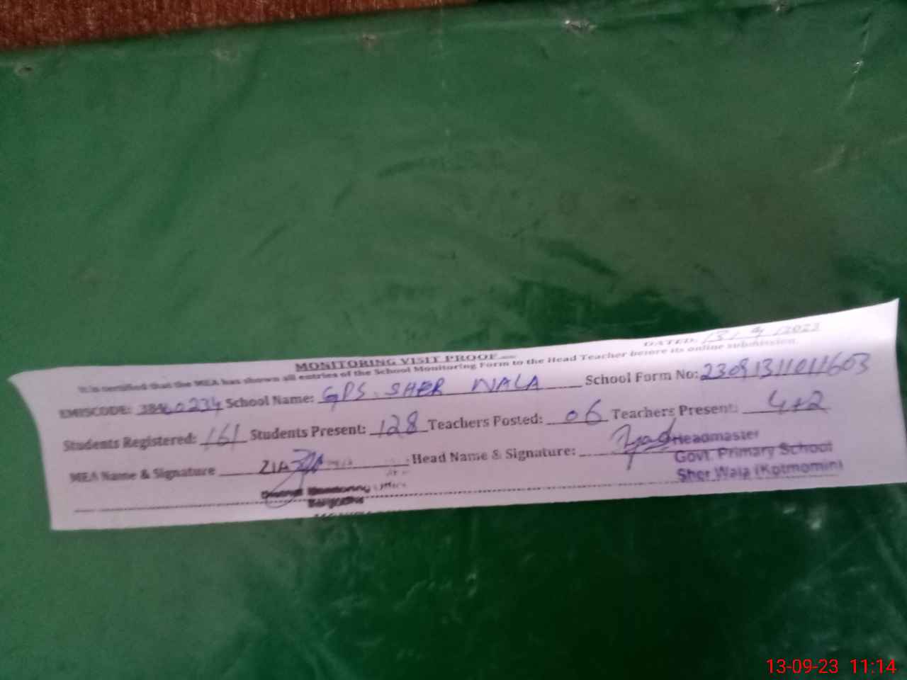 | EMIS Code: 38460234 | Name of School: GPS SHER WALA | |||