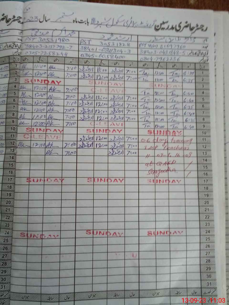 | Name: Sh**** As**** Designation: (School Headmaster's/Headmistress's) PST Phone/Cell Number: 03**** |
